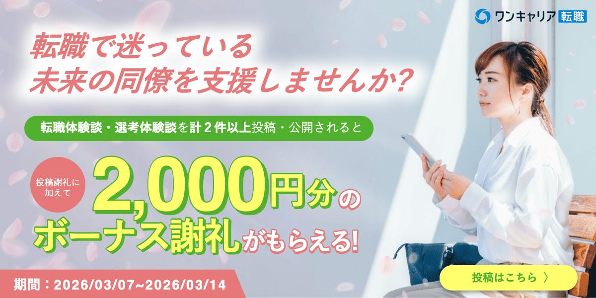 平素より当サービスをご利用いただき、誠にありがとうございます。 2025年7月16日より、当サービスは「ONE CAREER PLUS」から「ワンキャリア転職」へと名称を変更することとなりました。 今後とも変わらぬご愛顧を賜りますよう、心よりお願い申し上げます。