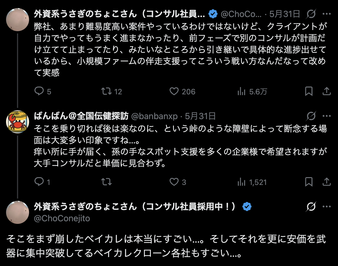 そこに商機を見出していたのが、かつてのベイカレントであり、今のベイカレクローン、というわけです。