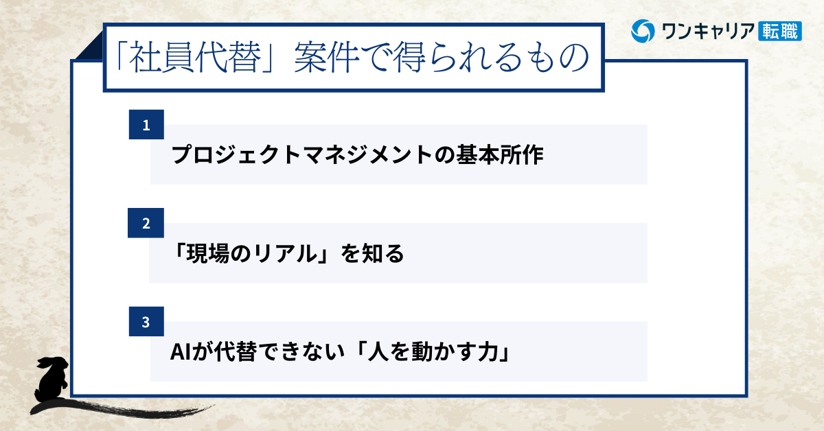 一度その立場を経験しておくと、将来自分がプロジェクト全体をリードする立場やプロジェクトを発注する立場になったときに必ず力になってくれるはずです。