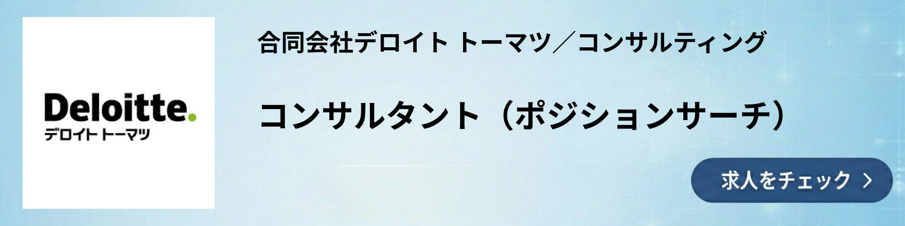 ※なお、2025年12月より、デロイトトーマツグループの組織再編により、「デロイトトーマツコンサルティング」「デロイトトーマツファイナンシャルアドバイザリー」「デロイトトーマツリスクアドバイザリー」の3社が合併し、「合同会社デロイト トーマツ」となりました。本記事では、経営支援などを提供する旧:デロイト トーマツ コンサルティングの働き方について解説します。