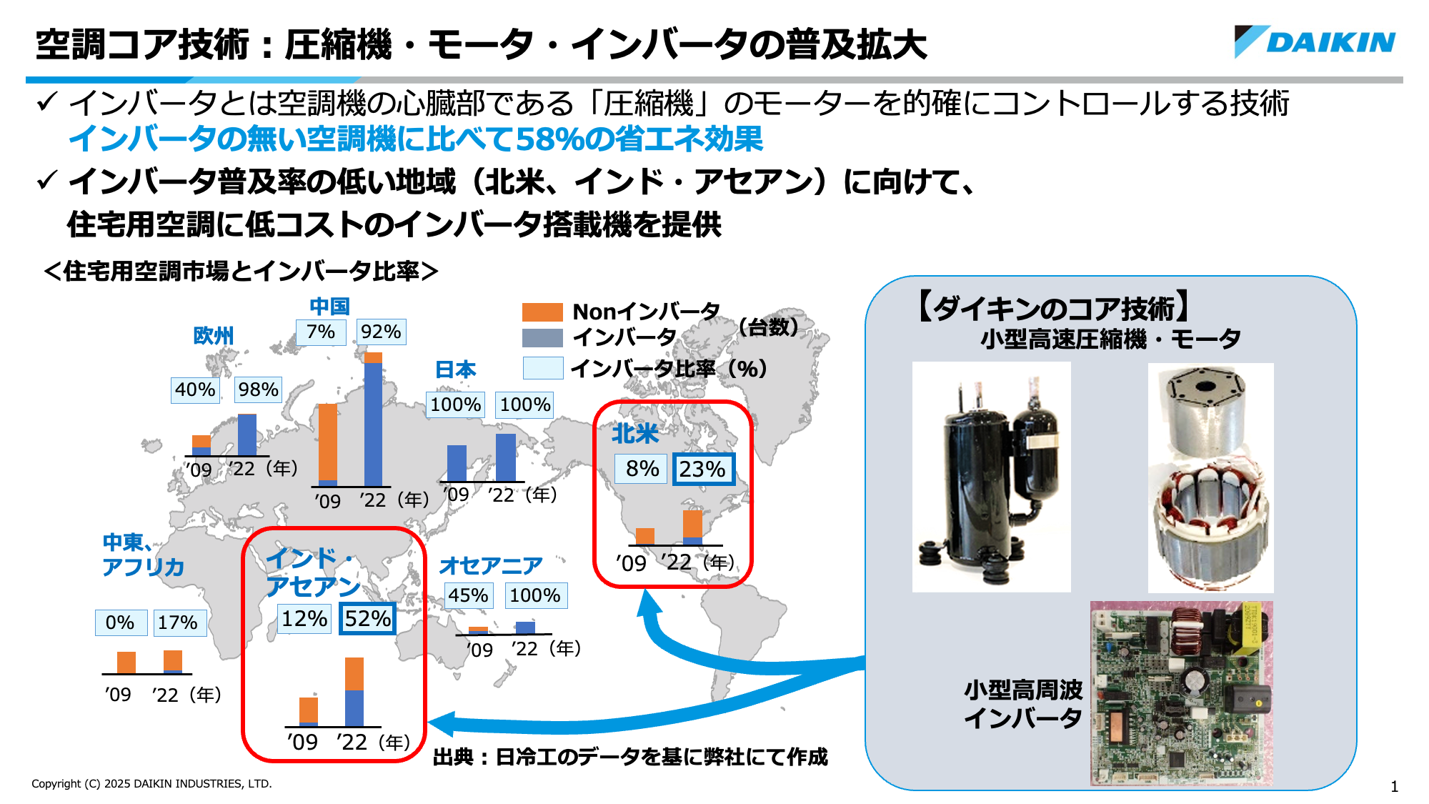 北野:地図を見るとインドや北米はまだインバータの普及率が低いですが、今後はインバータ化が進むのでしょうか?