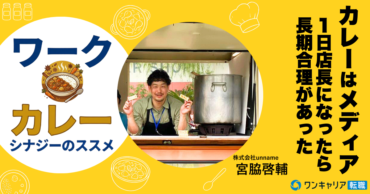 人脈を広げる最強ツールとなるのが、カレー。株式会社unname代表取締役の宮脇啓輔さんも「カレー作りがメディアとなっていろんな機会と人を結びつけてくれた」と振り返ります。カレーがキャリアにもたらす長期的なメリットを紐解きます。
