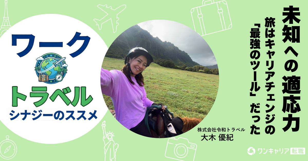 2026年は新しい仕事に挑戦したい。そう考える人に届けたいのが、株式会社令和トラベルの大木優紀さんのストーリー。アナウンサーから旅行業界へと大きなキャリアチェンジをした背景にも「旅」が密接に関わっていました。キャリアチェンジを成功させるための旅行の活用法に迫ります。