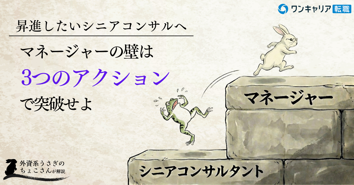 実際、大手総合系ファームなどであれば、与えられた期待値を満たしながら成長し、一定の評価を積み上げていければ、マネージャーまでは比較的昇進しやすい構造になっています。