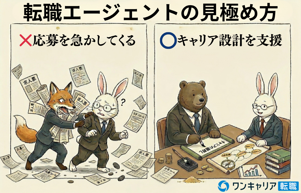 十分に準備ができていない状態で、「今すぐ応募しましょう!」、「ここのポジションが最適です!」と意思決定を急かしてくるエージェントに対しては、「候補者のキャリア設計よりも成約数を優先している…?」と警戒するようにしましょう。