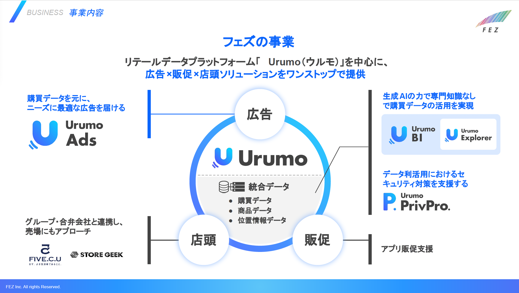 このマーケットに変革を起こそうとしているのが、フェズです。国内最大級のリテールデータプラットフォーム「Urumo(ウルモ)」を軸に、リテールメディア事業などを展開しています。業界への深い理解や保有するデータの量と質を強みに年々成長しており、2022年にはシリーズDの調達を実施。リテールテック企業として市場からも注目を浴びている企業です。