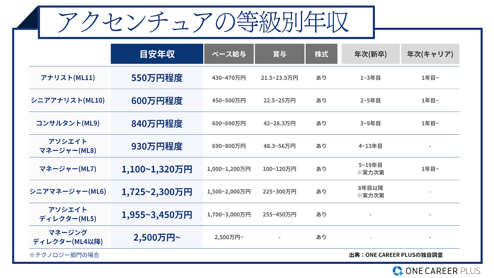 ●アクセンチュアの等級(役職)・年代・職種別年収まとめ