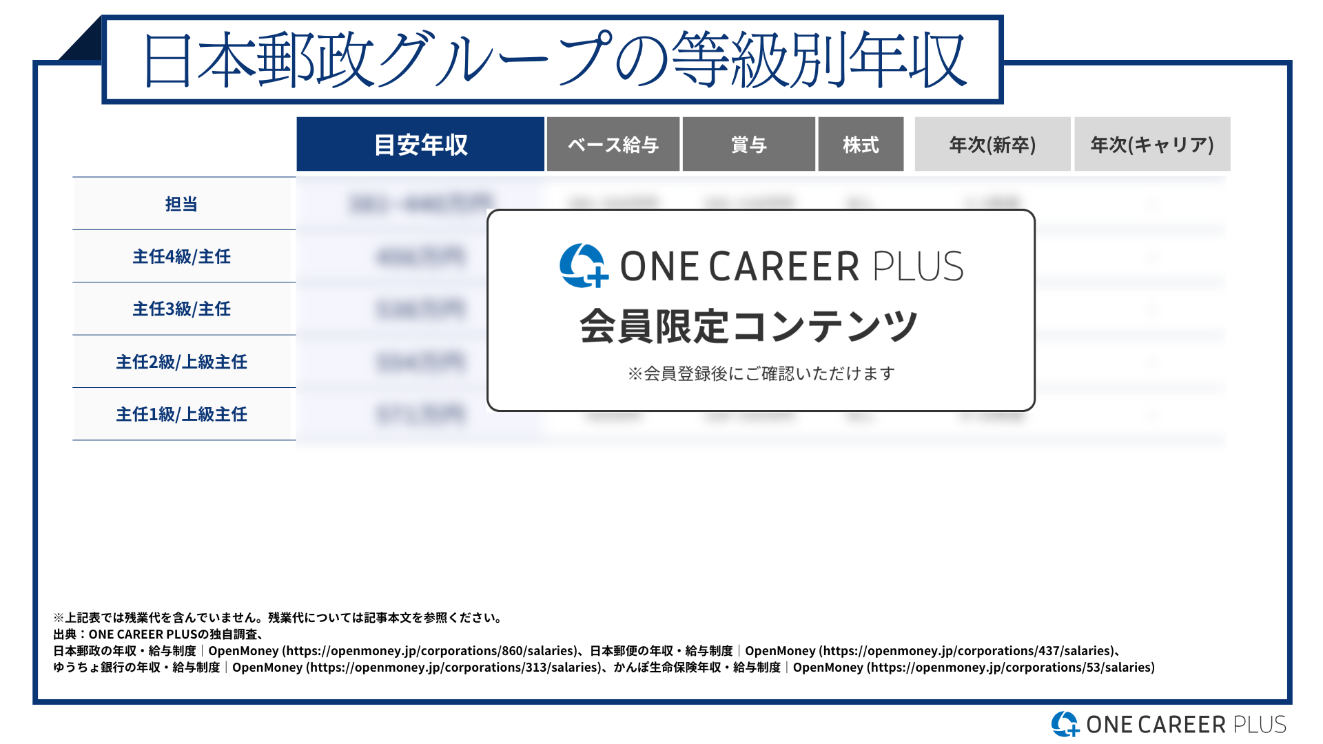 本記事では、ワンキャリア転職の独自調査をもとに、日本郵政グループの給与体系や評価制度を解説します。