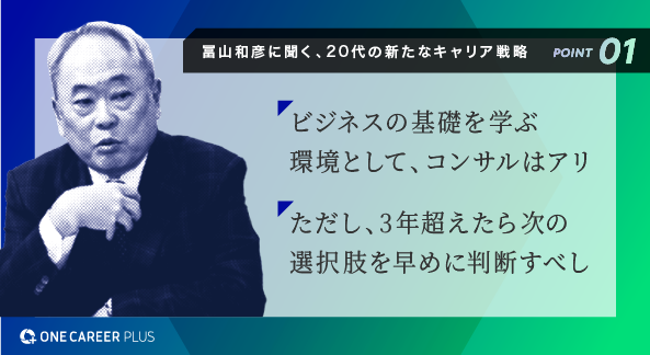 冨山:こうしたことを踏まえ、30代前半ごろまでには「コンサルタントとしての道を極めるのか、事業経営にいくのか、あるいは実事業や実投資にいくのか」を早めに判断した方がいいでしょう。