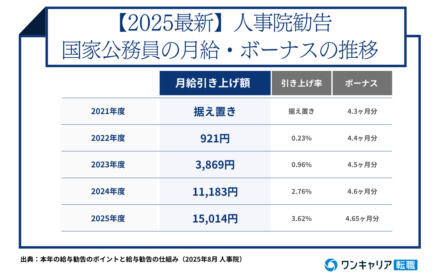 国家公務員の待遇改善は近年、着実に進んでいる。国家公務員の月給引き上げは4年連続で、引き上げ幅も年々大きくなっている。民間企業の賃上げの流れが、国家公務員の給与にも反映されている。